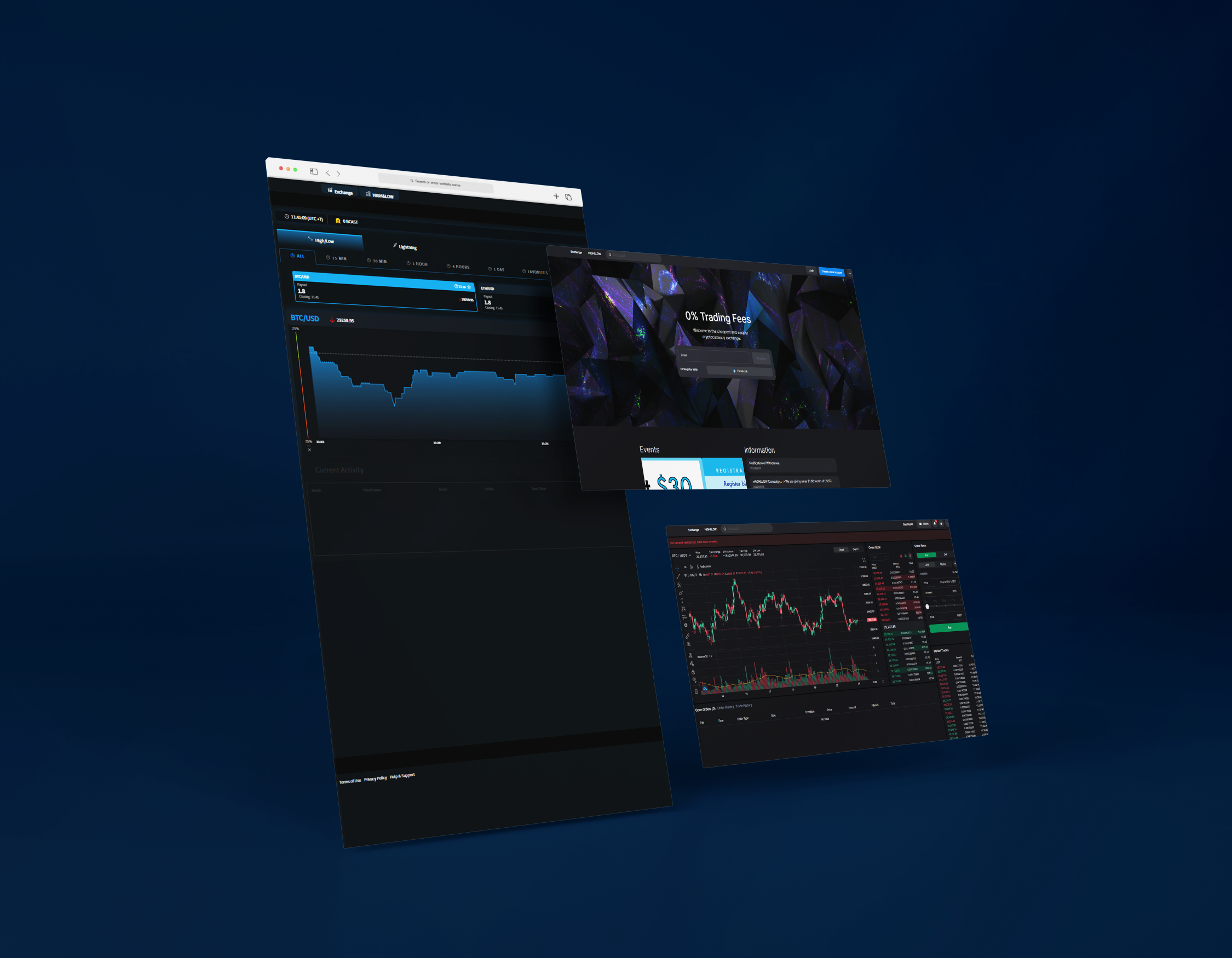 Cryptocurrency Exchange: binary trading, intuitive and informative interface.